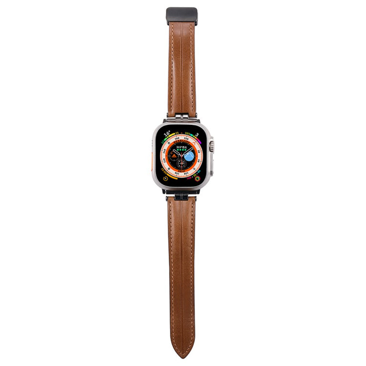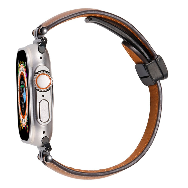 Apple Watch Series 41mm - 40mm - 38mm Universal Watch Band Crazy Horse Texture Strap - Ginger+Black Buckle Buckle