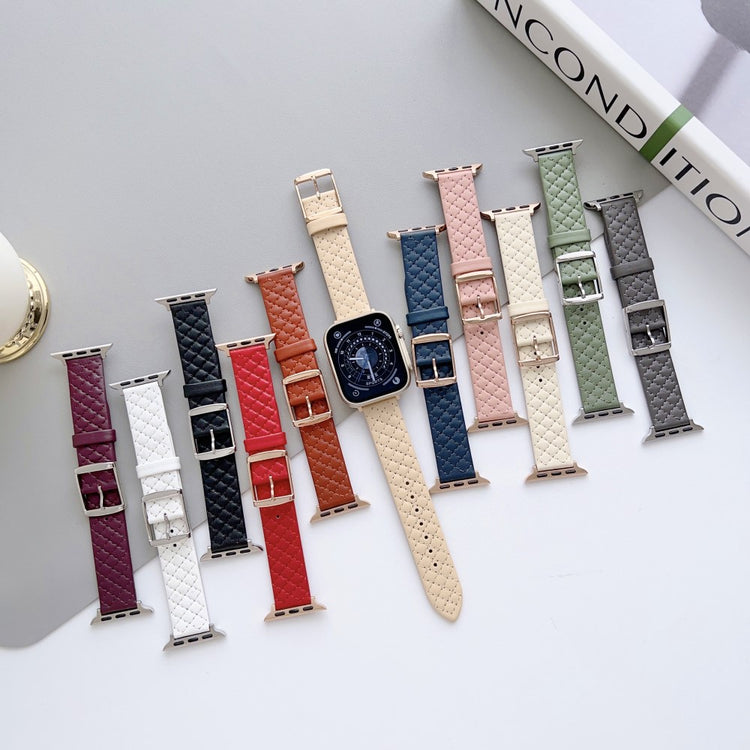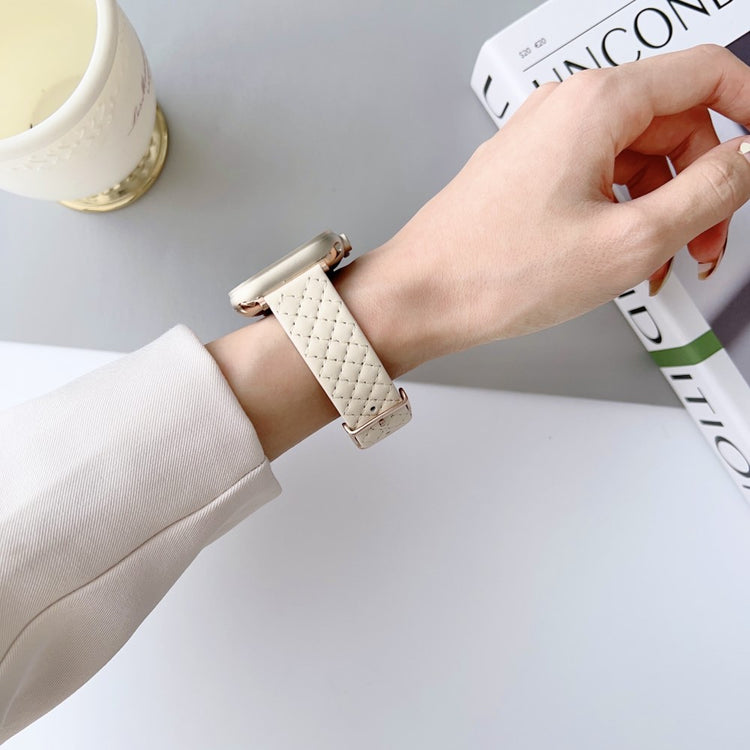 Apple Watch Series 41mm - 40mm - 38mm Universal Smart Watch Band Rhombus Grid Strap - Pearl White