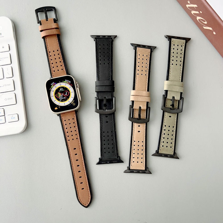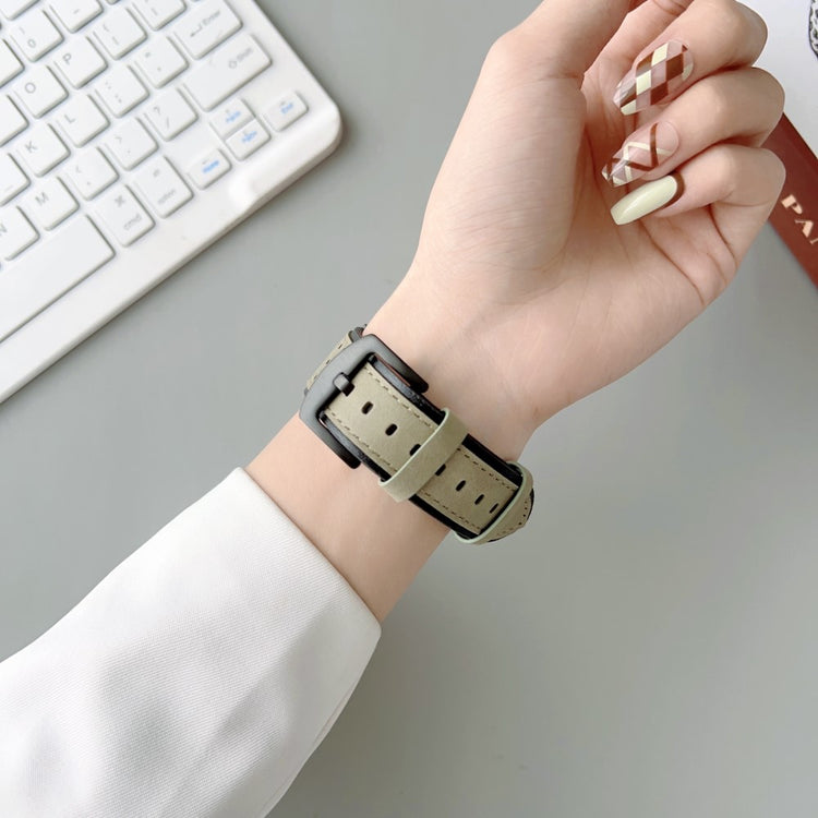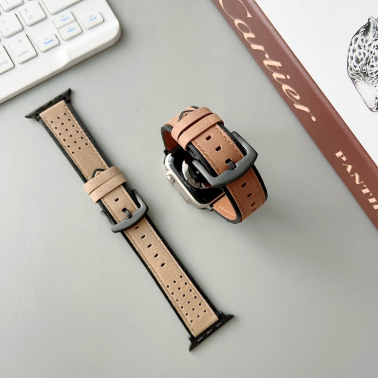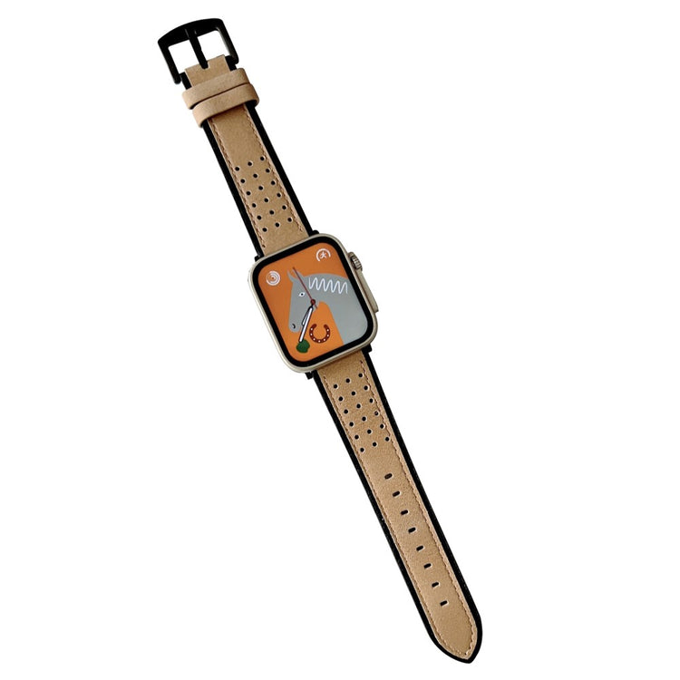 Apple Watch Series 49mm - 45mm - 44mm - 42mm Universal Top Layer Cowhide Watch Strap - Light Yellow