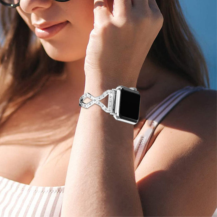 Yndigt Apple Watch Series 7 41mm Metal og Rhinsten Rem - Sølv#serie_2