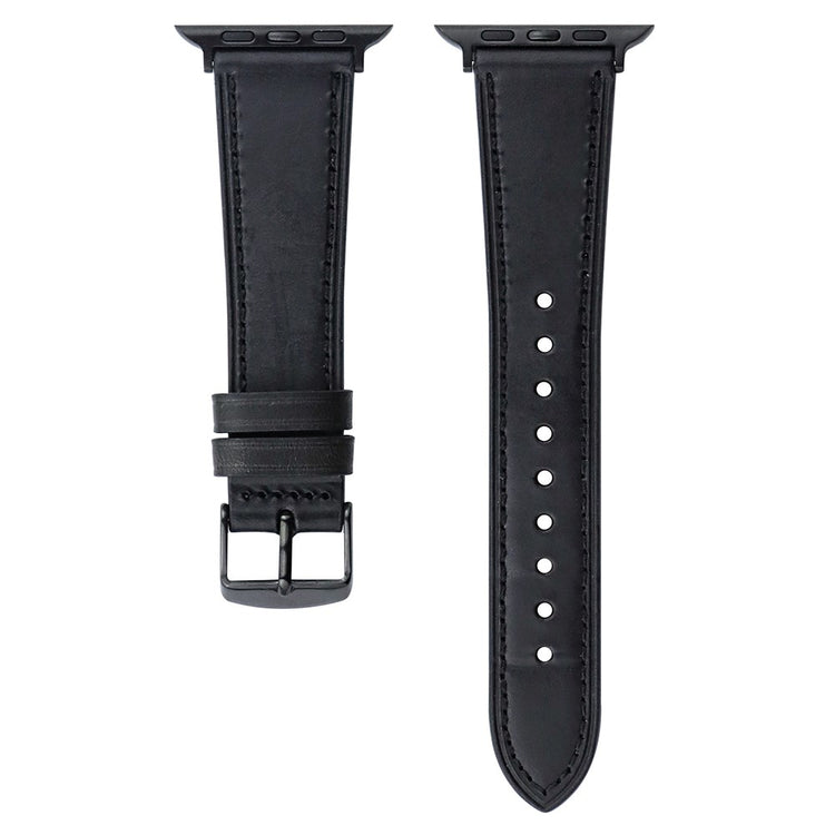 Apple Watch 49mm / 45mm / 44mm / 42mm Band Genuine Cow Leather Strap - Black 2