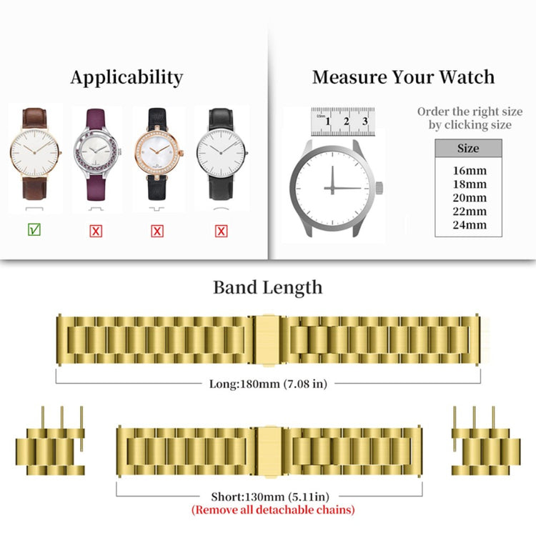 20mm Universal stainless steel watch strap - Gold#serie_3