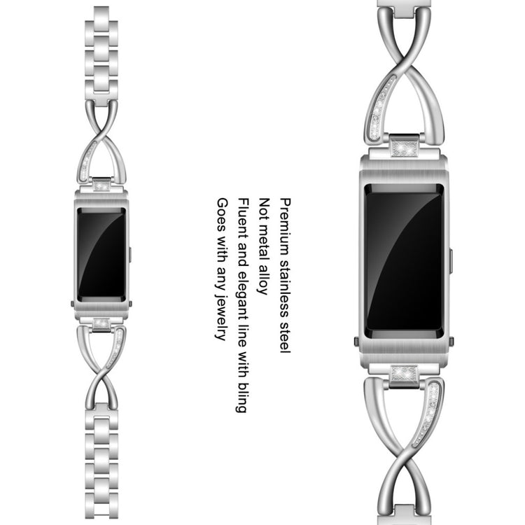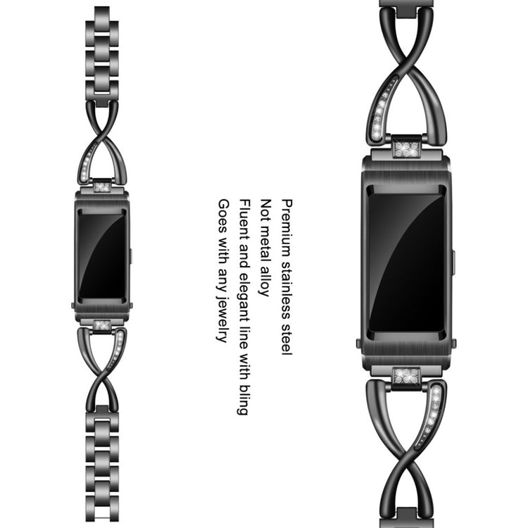 Bracelet de montre en acier inoxydable avec rhinestones, à la fois durable et résistant à l'usure. Il est doté d'une boucle ajustable pour un redimensionnement facile, sans outils nécessaires, et constitue un remplacement parfait pour votre ancien bracelet cassé. Compatible avec plusieurs montres, y compris Huawei TalkBand B5 et Fossil Q Tailor, ce bracelet de 18 mm est idéal pour embellir votre style.