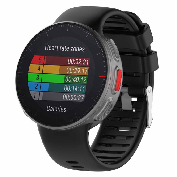 Bracelet de remplacement en silicone pour Polar Vantage V, avec boucle ardillon ajustable. Fabriqué en silicone souple, écologique et non toxique, ce bracelet est flexible, résistant à l'usure et durable.