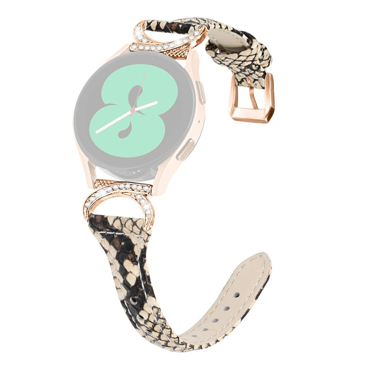 Offrez à votre montre Samsung une touche d'élégance avec notre bracelet en cuir de haute qualité. Ce bracelet est confortable à porter et facile à assortir à vos tenues quotidiennes. Son design raffiné, agrémenté de rhinestones scintillants, sublime l'apparence de votre smartwatch, la rendant encore plus stylée. Grâce à sa conception à multiples trous, vous pouvez ajuster facilement la taille pour un maintien optimal. De plus, le boucle en acier inoxydable garantit une durabilité accrue, assurant que votre bracelet reste en excellent état au fil du temps. C'est le remplacement idéal pour votre ancien bracelet usé. Que ce soit pour le travail, des occasions de loisir ou d'autres moments du quotidien, ce bracelet convient parfaitement aux hommes et aux femmes. Compatible avec les montres disposant d'un arrêtoir de 20 mm, c'est un choix incontournable pour ceux qui recherchent élégance et fonctionnalité.