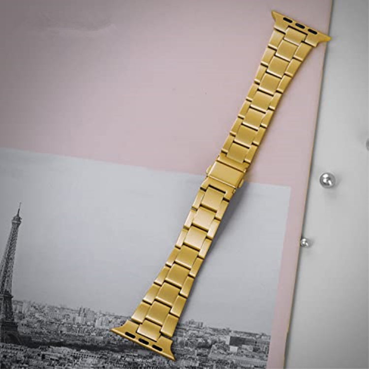 Fabriqué en acier inoxydable de haute qualité, ce bracelet est conçu pour une utilisation durable. Personnalisez votre Apple Watch avec ce bracelet raffiné à trois perles. La boucle déployante permet de le mettre et de l'enlever facilement et rapidement.