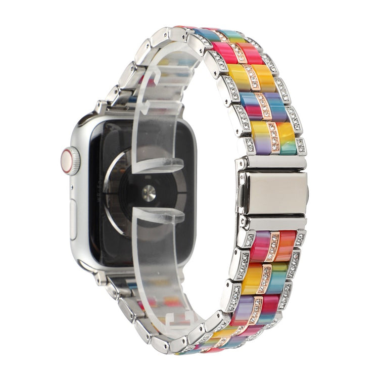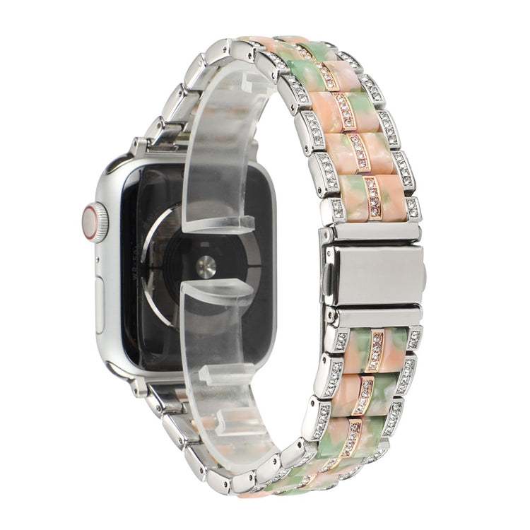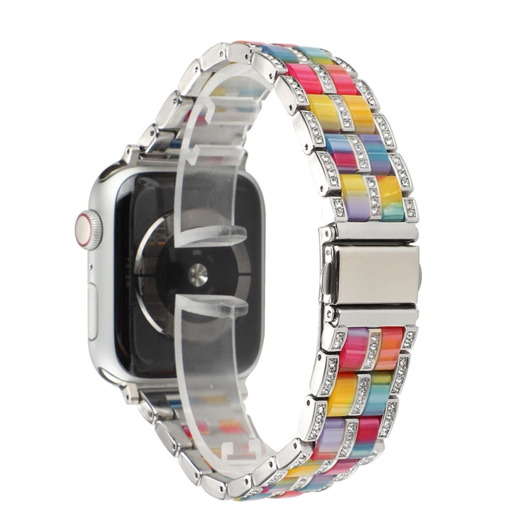 Conçu pour les Apple Watch Series 8 41mm / Series 7 41mm / SE / SE(2022) / Series 6 / 5 / 4 40mm / Series 3 / 2 / 1 38mm, ce bracelet en résine et acier inoxydable incarne le luxe et le raffinement. Sculpté à partir d'acier inoxydable premium et combiné à de la résine de haute qualité, il offre un design bicolore parfait pour le travail comme pour les voyages.