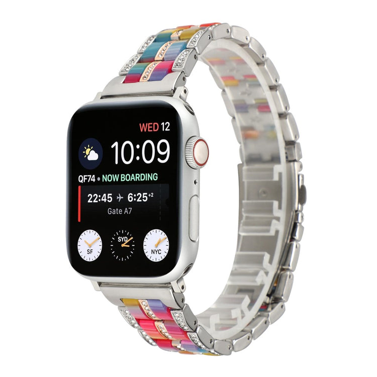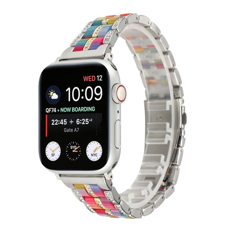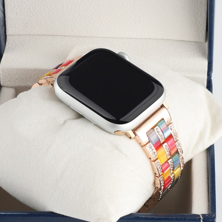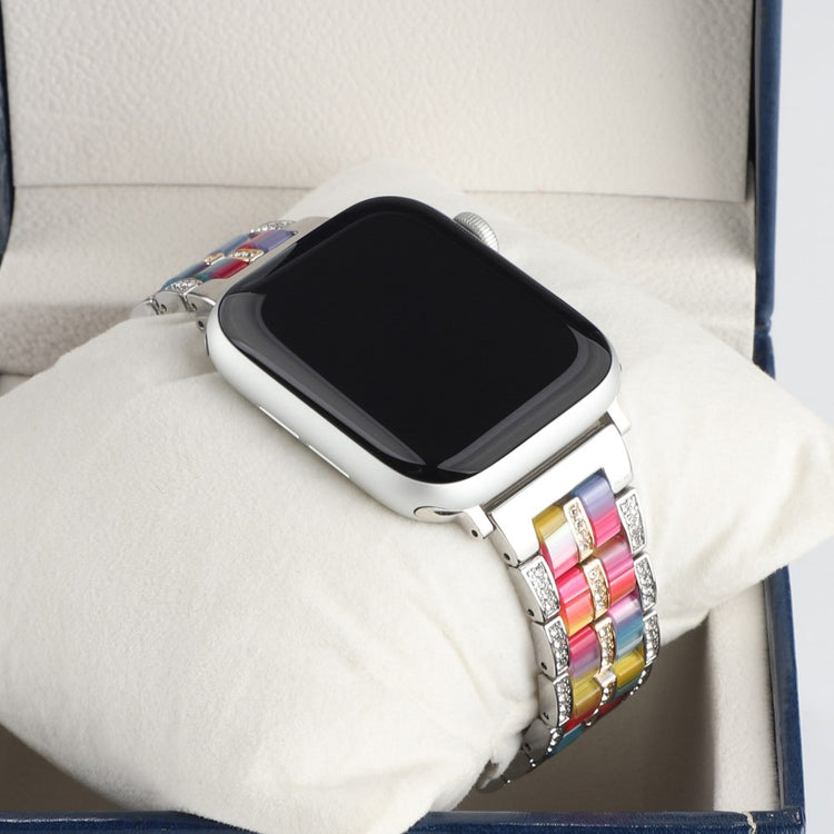 Offrez à votre Apple Watch une touche de luxe et de noblesse avec ce bracelet en résine de haute qualité, alliant un métal en acier inoxydable premium à un design moderne. Ce bracelet est parfait pour les professionnels élégants comme pour les voyageurs stylés grâce à son design color block qui s'adapte à toutes les occasions. Bien que sa composition légère ressemble à celle du plastique, il est en réalité plus durable et confortable, garantissant un port agréable tout au long de la journée. Les décorations en strass scintillants ajoutent une touche d'élégance qui fera tourner les têtes. La structure en acier inoxydable solide combine parfaitement avec la résine pour un style intemporel. De plus, son installation et son retrait sont un jeu d'enfant, vous permettant de changer de look en un clin d'œil. C'est également un cadeau idéal pour vos proches, alliant style et fonctionnalité. Avec une longueur de 189 mm et une circonférence de poignet allant de 150 mm à 220 mm, ce bracelet s'ajuste parfaitement à divers gabarits. Ne manquez pas cette opportunité d'embellir votre montre et de vous démarquer avec sophistication.