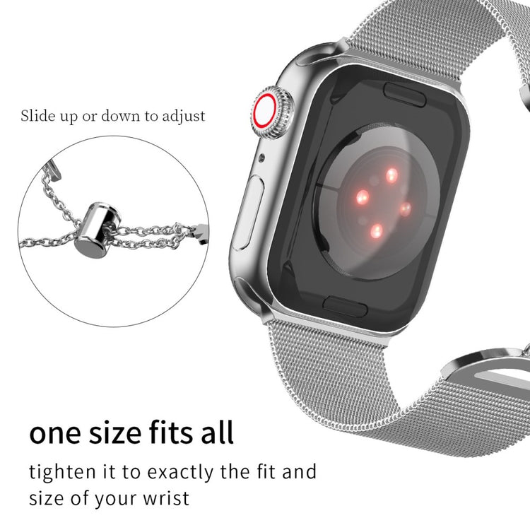 Ce bracelet en acier inoxydable est conçu pour remplacer votre ancien bracelet de montre pour les séries de Apple Watch 9, 8, 7, 6, 5, 4, SE (2023), SE (2022), SE 40mm, 3, 2 et 1. Sa bouclette unique ajoute une touche de style à votre poignet, tout en restant durable et résistant à l'usure. Facile à installer et à retirer, ce bracelet est l'idéal pour donner un nouveau look à votre montre.