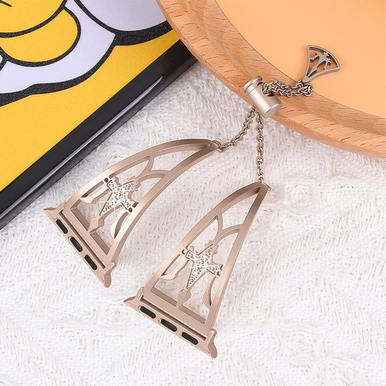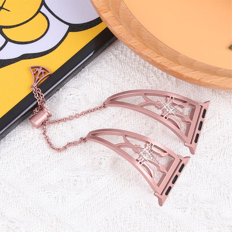 Ce bracelet de montre élégant et unique est fabriqué en acier inoxydable 304 premium, garantissant une durabilité et une robustesse exceptionnelles. Son design ajouré distinctif et ses strass brillants apportent une touche de sophistication à votre Apple Watch.
