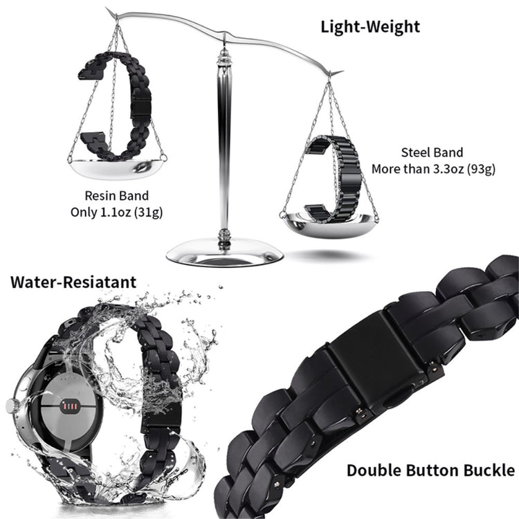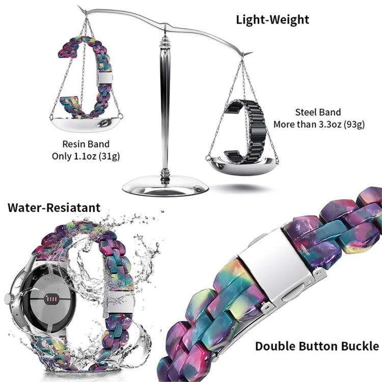 Ce bracelet pour Google Pixel Watch 2 / Pixel Watch est conçu en résine de haute qualité, un matériau résistant à l'eau et à la rouille. Chaque pièce de résine est polie à la main par des artisans expérimentés, garantissant une finition impeccable et un aspect élégant.