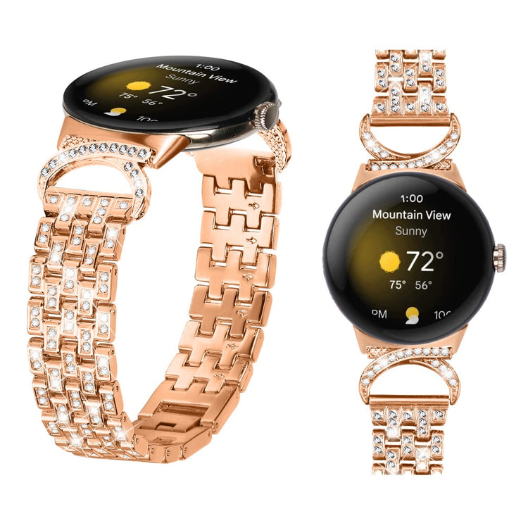 Ce bracelet pour Google Pixel Watch 2 / Pixel Watch est fabriqué en acier inoxydable, un matériau résistant à l'usure et durable. Décoré de 5 rangées de strass brillants, il offre un style unique et élégant qui personnalisera votre montre connectée.