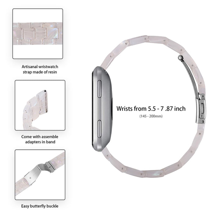 Optez pour ce bracelet en résine avec boucle en acier inoxydable, idéal pour votre Fitbit Versa 2 / Versa / Versa Lite / Versa SE. Fabriqué à partir de matériaux de haute qualité, il allie élégance et durabilité. Sa conception soignée et stylée personnalise votre montre intelligente tout en lui offrant un aspect raffiné. Grâce à sa fermeture à cliquet en acier inoxydable, le bracelet est facile à enfiler et à retirer, garantissant ainsi un confort quotidien. Chaque pièce en résine est finement polie par des artisans expérimentés, offrant une texture agréable au toucher et une sensation de qualité supérieure. Ce bracelet est également un remplaçant idéal pour votre ancien bracelet usé ou cassé. Avec une interface de 22 mm et une longueur de 17,2 cm, il s'adapte à des tours de poignet de 5,5 à 7,87 pouces (145 à 200 mm), rendant ce bracelet non seulement élégant, mais aussi pratique pour tous les utilisateurs.
